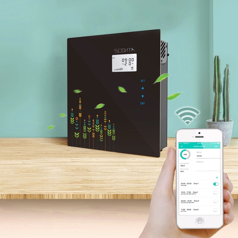 Les parfums ont un pouvoir extraordinaire : ils transforment durablement la perception de vos clients et créent immédiatement une atmosphère luxueuse. Grâce à sa pompe robuste, Le diffuseur professionnel SA100 parfume efficacement vos superficies commerciales, il vous suffit de choisir votre parfum selon votre goût, de le placer dans la capsule et démarrer la diffusion.